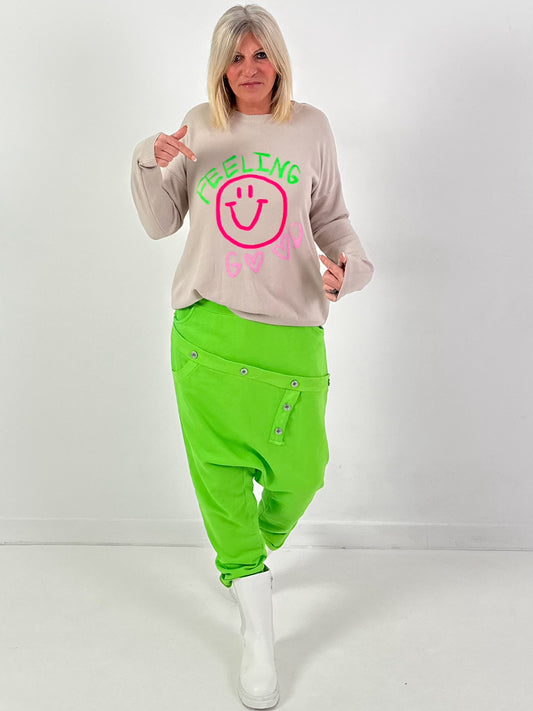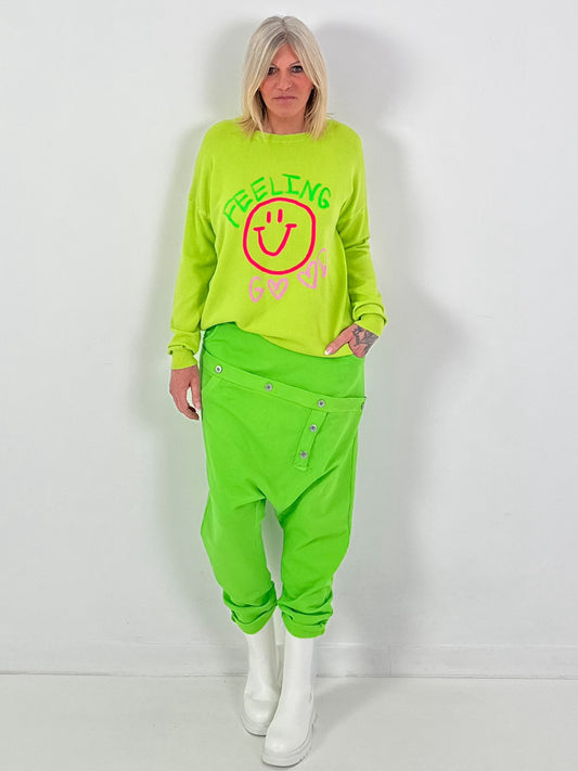 Strickpullover Modell "Feeling Good Vibes" - apfelgrün