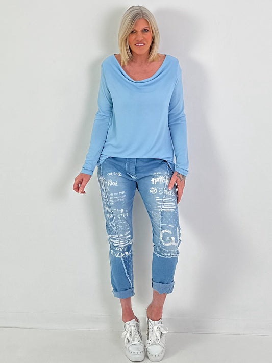 Shirt met watervalhals - lichtblauw
