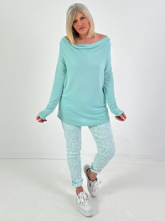 Shirt met watervalhals - mintgroen