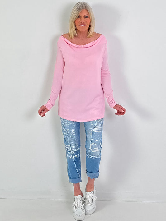 Shirt met watervalhals - roze