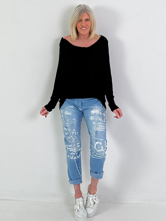 Broek met patroon - lichtblauw