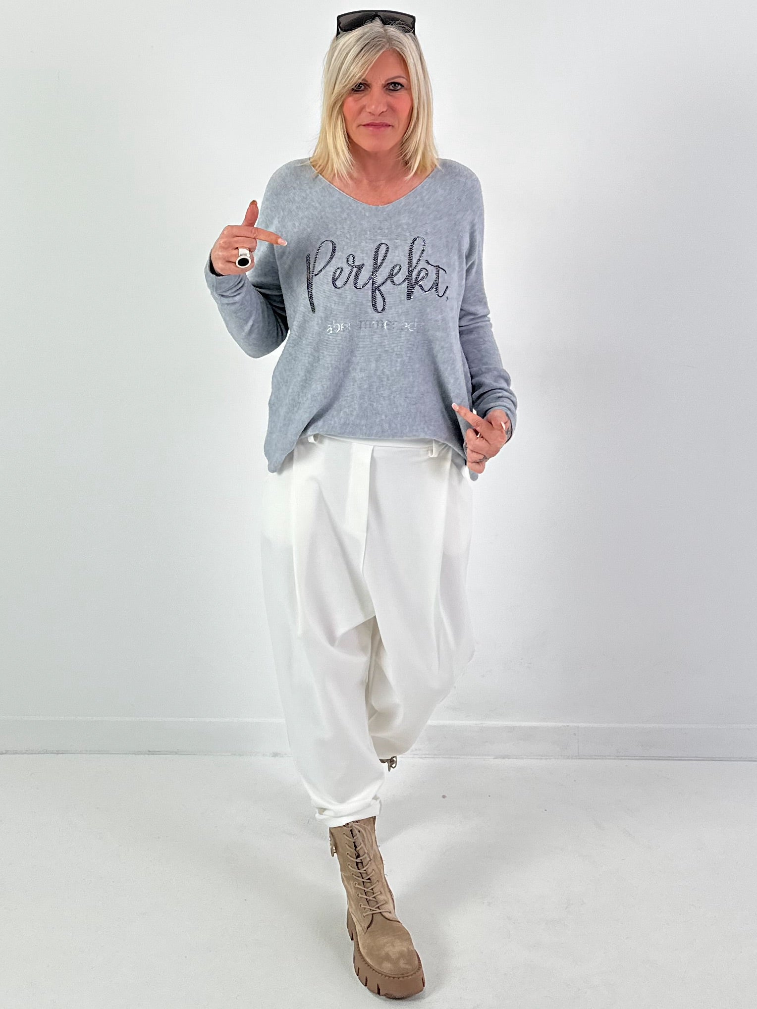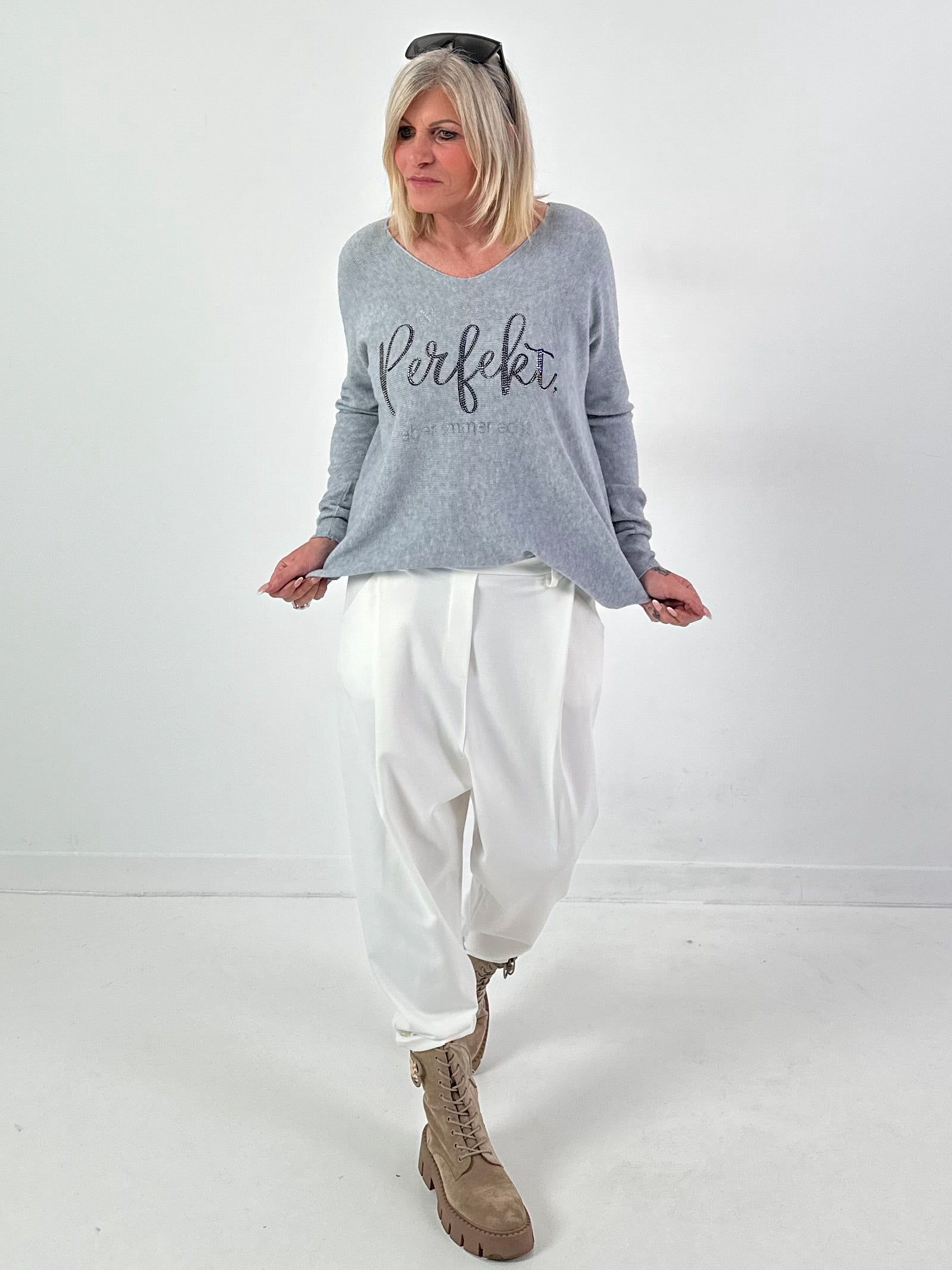 V-hals pullover model "Always Authentic" - grijs