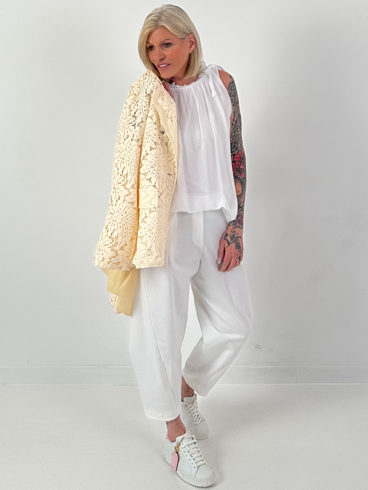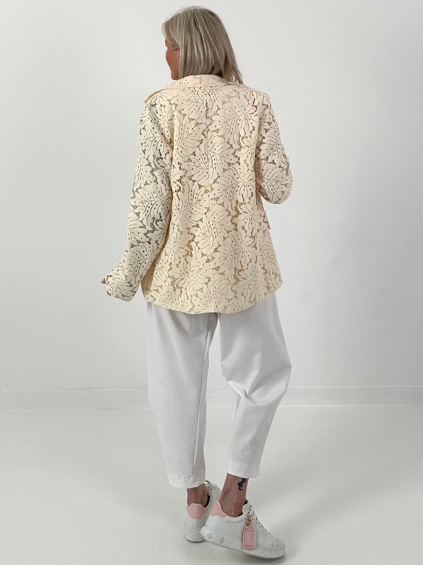 Blazer aus floraler Spitze - vanille