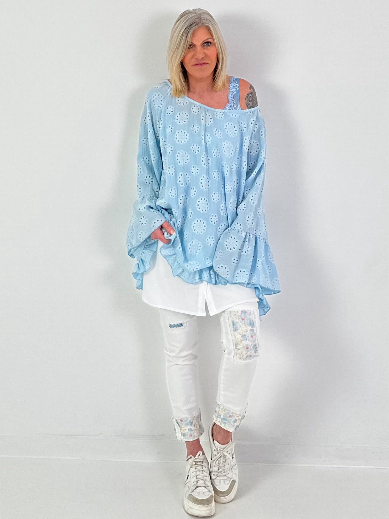 Tuniek/jurk met ajourborduurwerk - lichtblauw