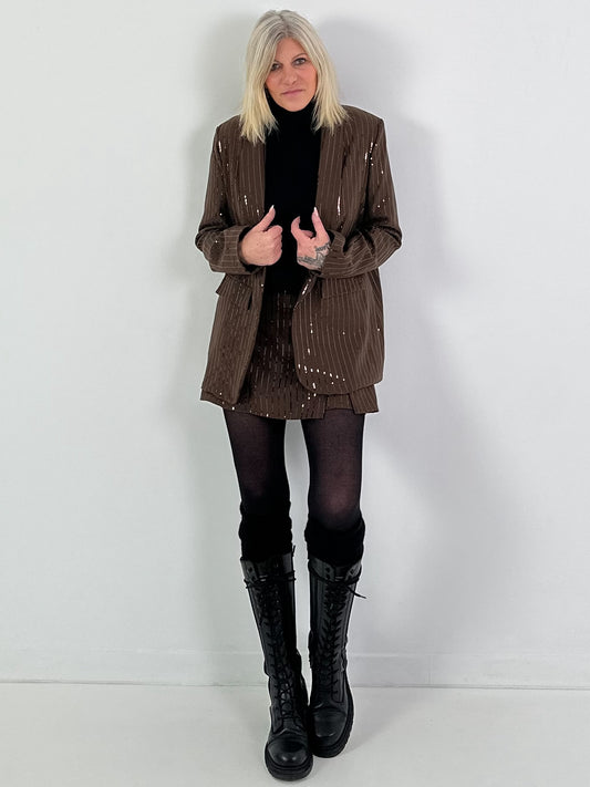 Blazer Modell "Midnight Sparkle" - dunkelbraun-braune Pailletten
