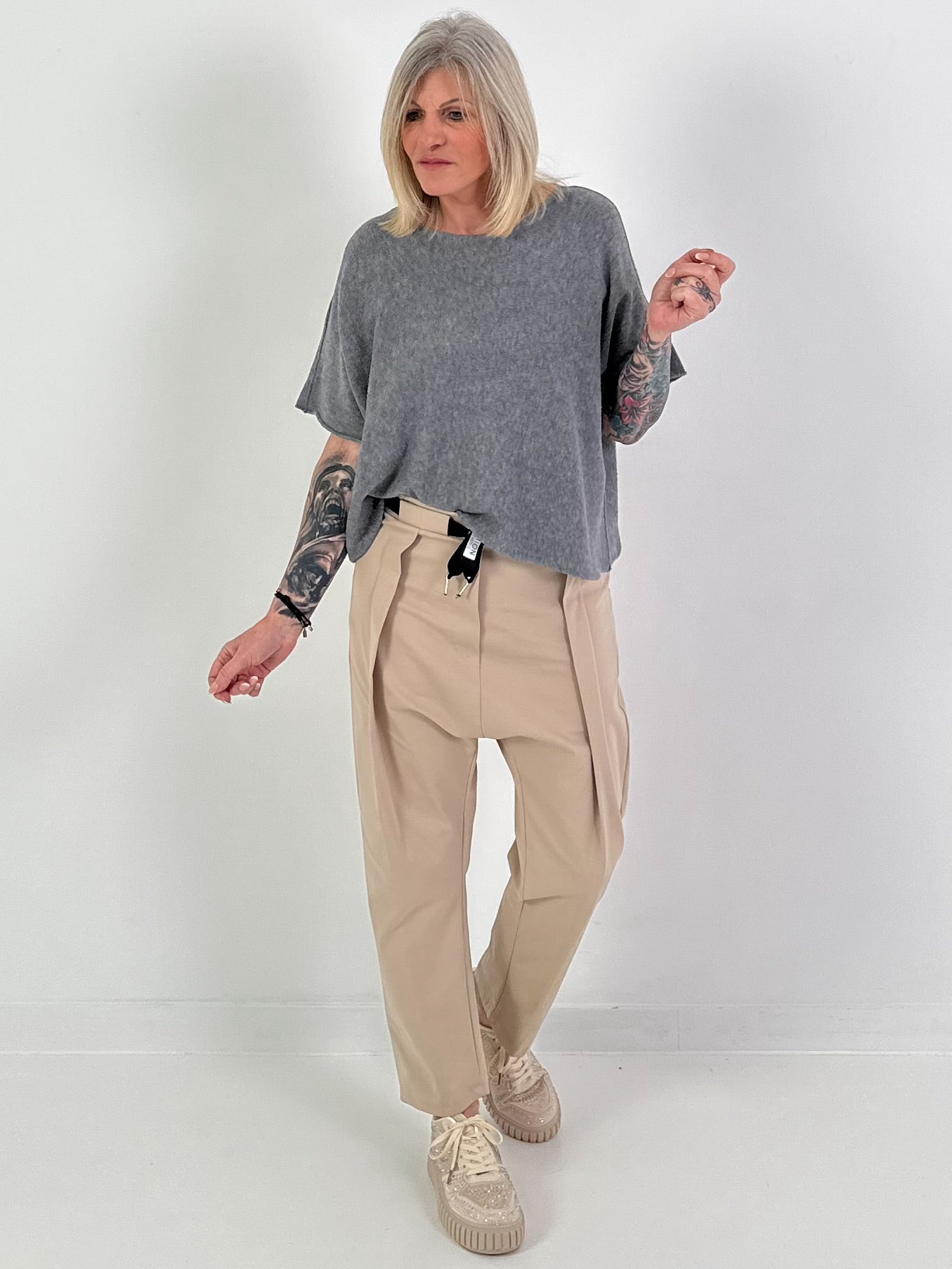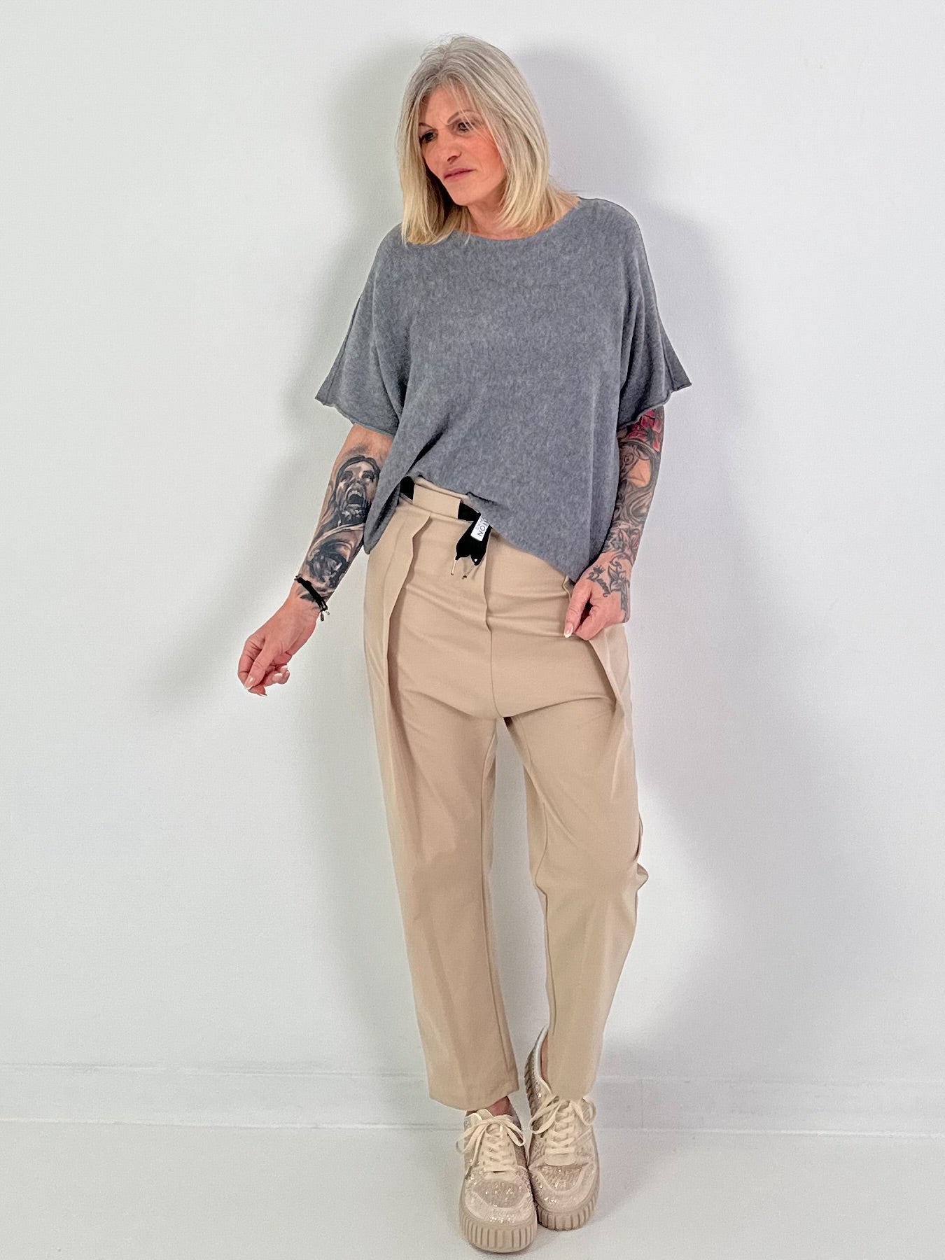 Gebreide trui met korte mouwen - antraciet