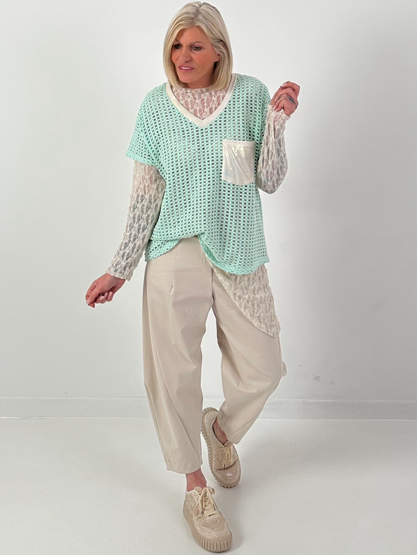 Häkelshirt mit V-Ausschnitt - mint