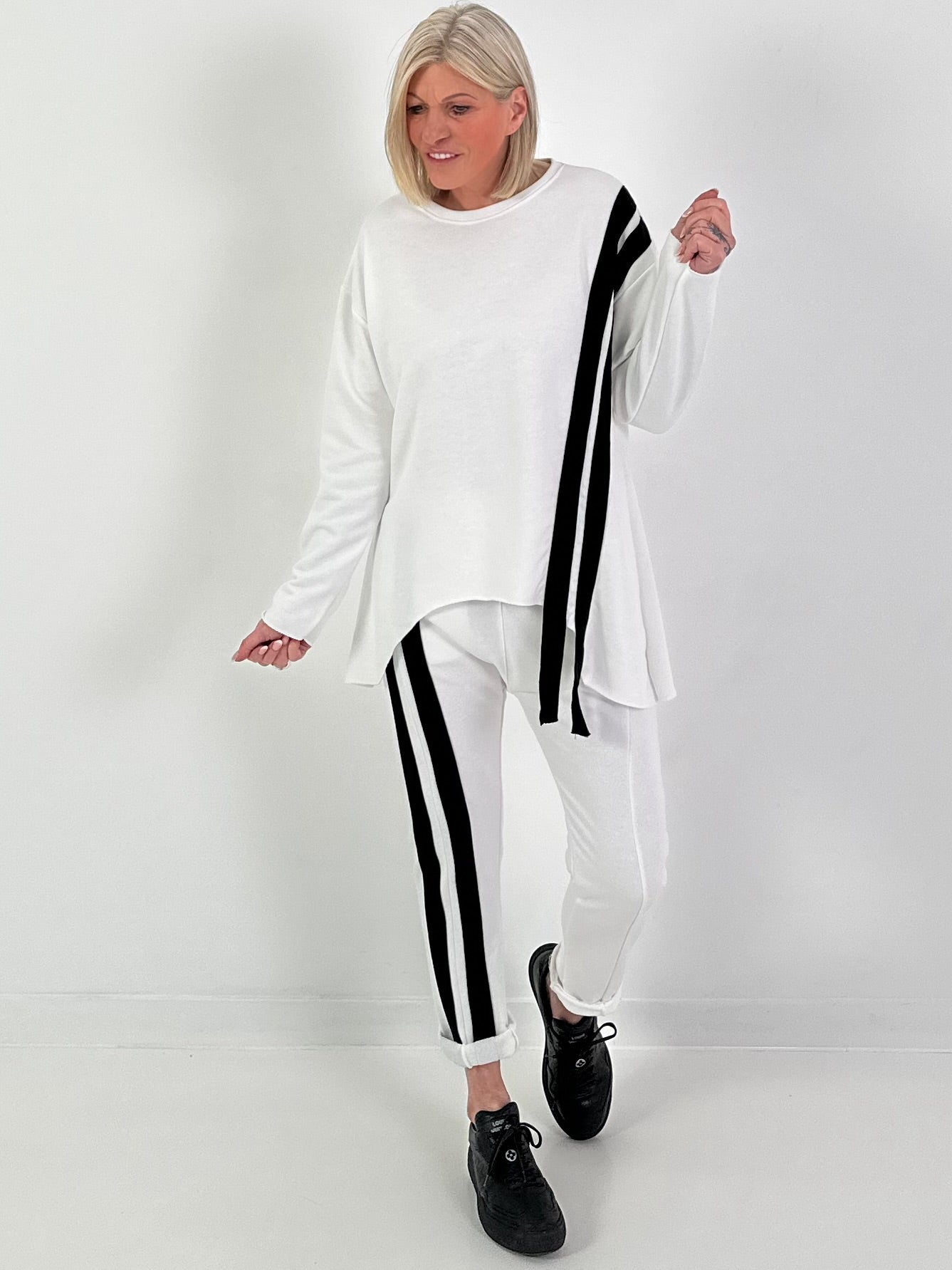Sweater mit seitlich verlaufenden Streifendetails - weiss