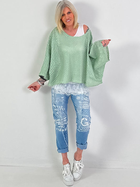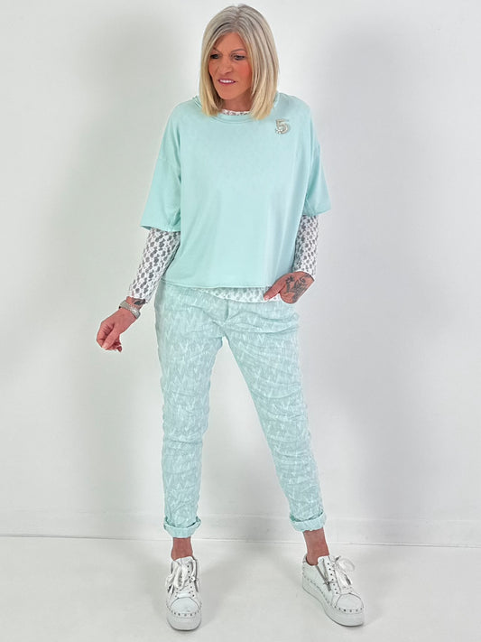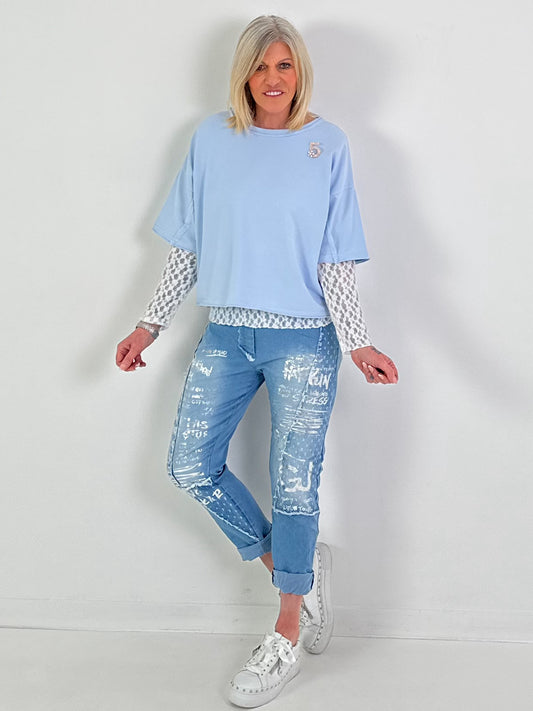 Sweatshirt met contrasterende naden - lichtblauw-roze